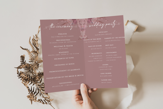 Mauve Boho Floral Classic Wedding Ceremony Program Downloadable Template EWP004