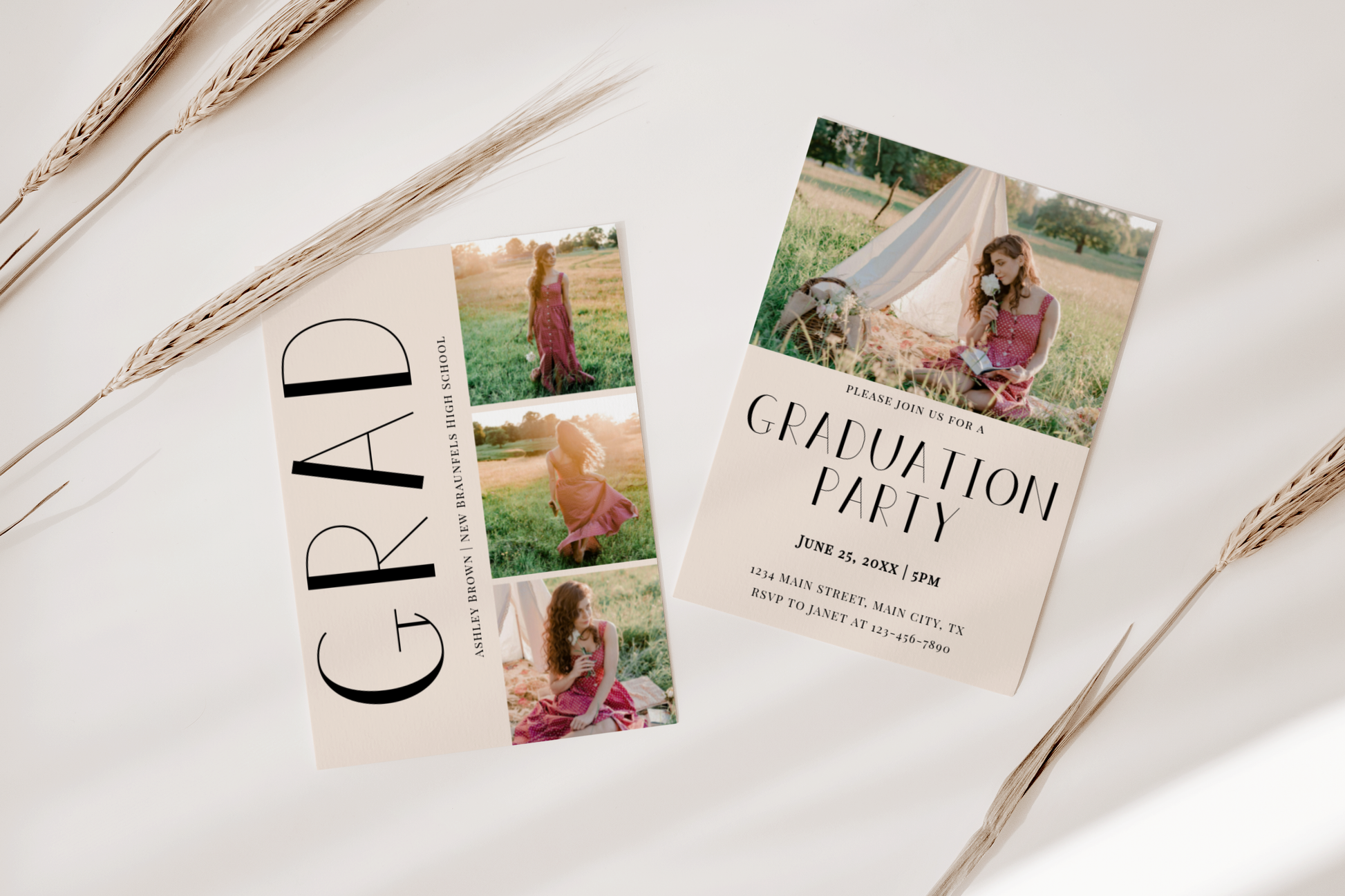 Modern graduation party invitation template. It's fully editable and easy to customize.