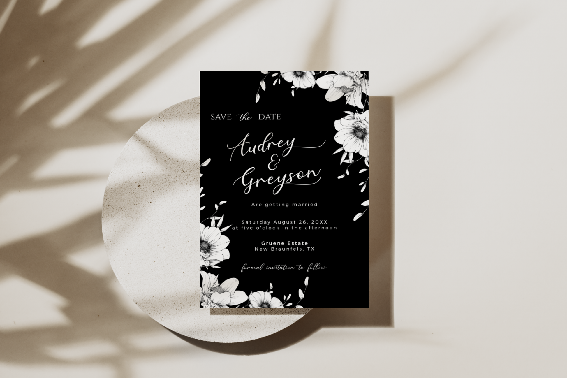 Modern Black Anemone Save The Date Template