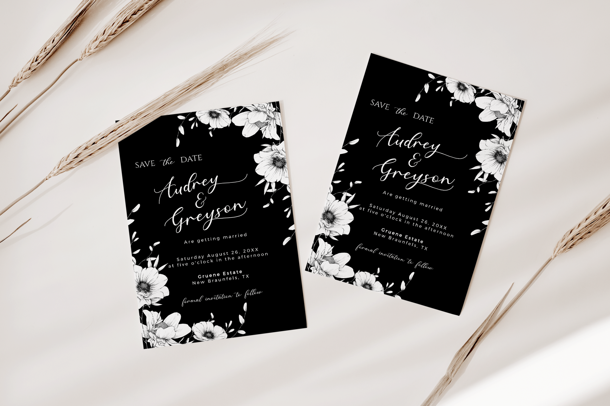Modern black anemone save the date template. Easily editable and totally customizable.