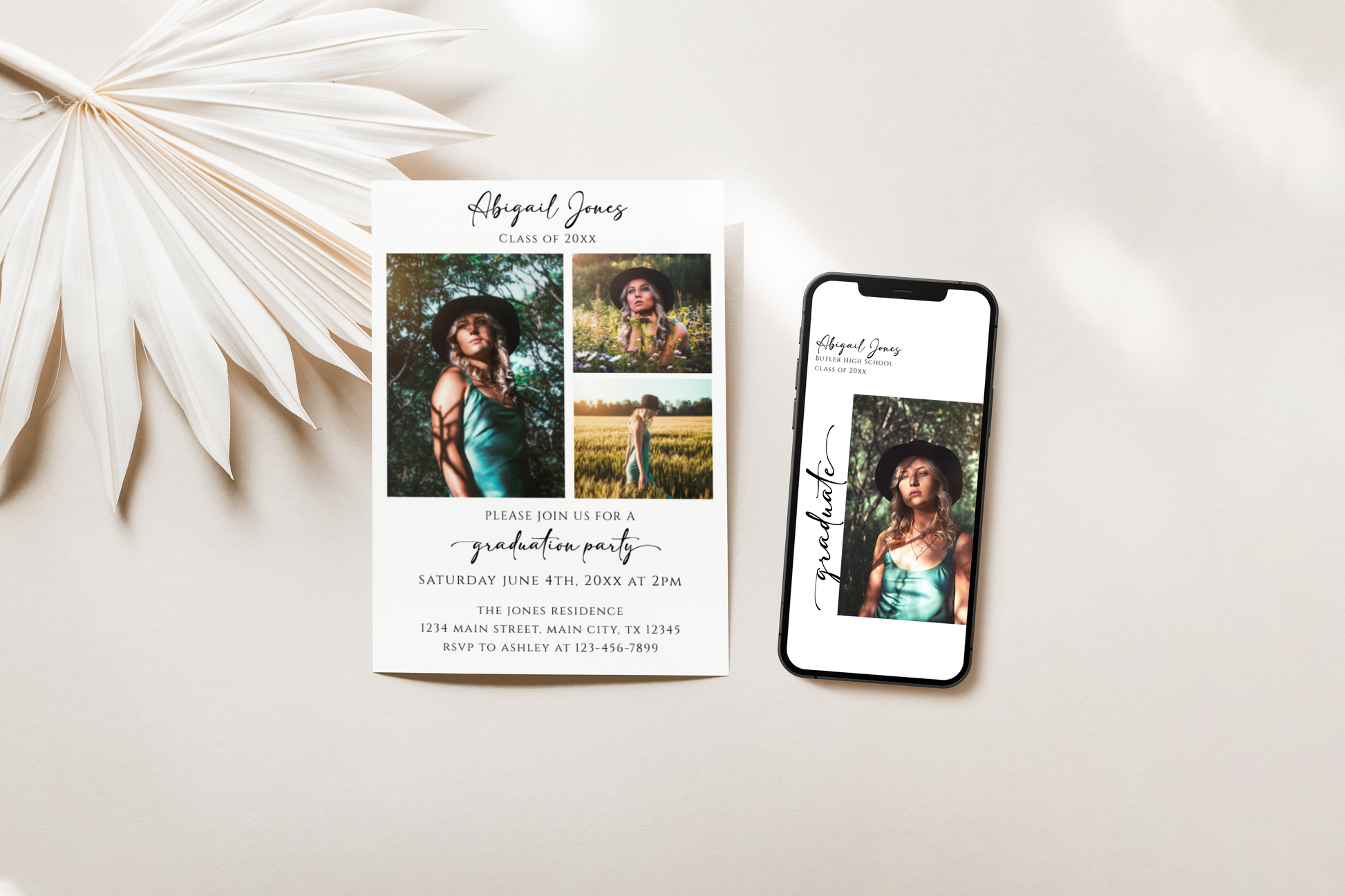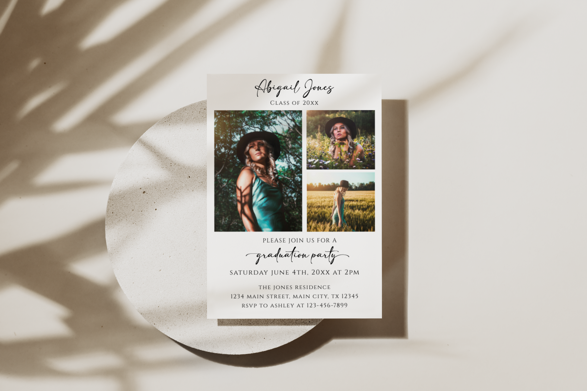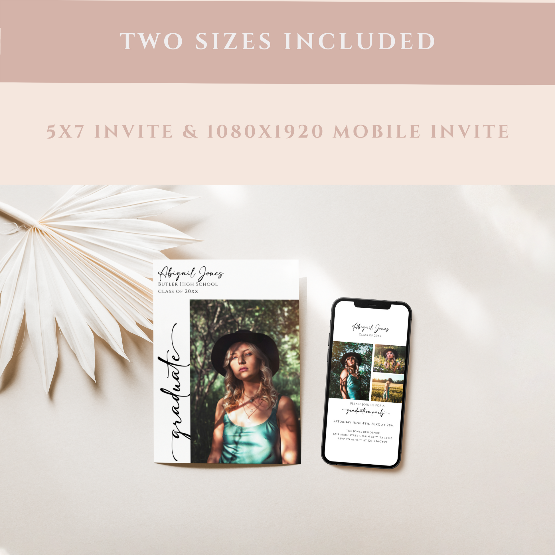 Modern graduation party invitation template. It's fully editable and easy to customize.