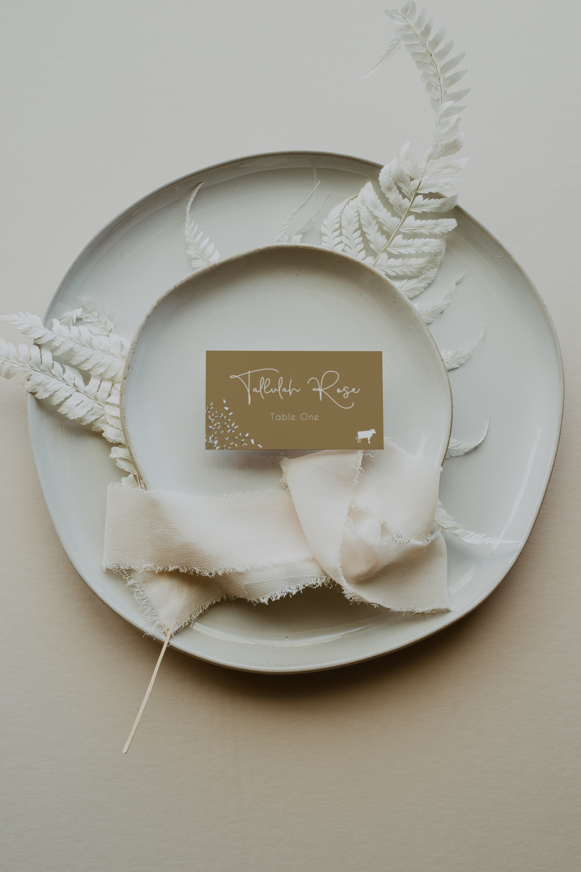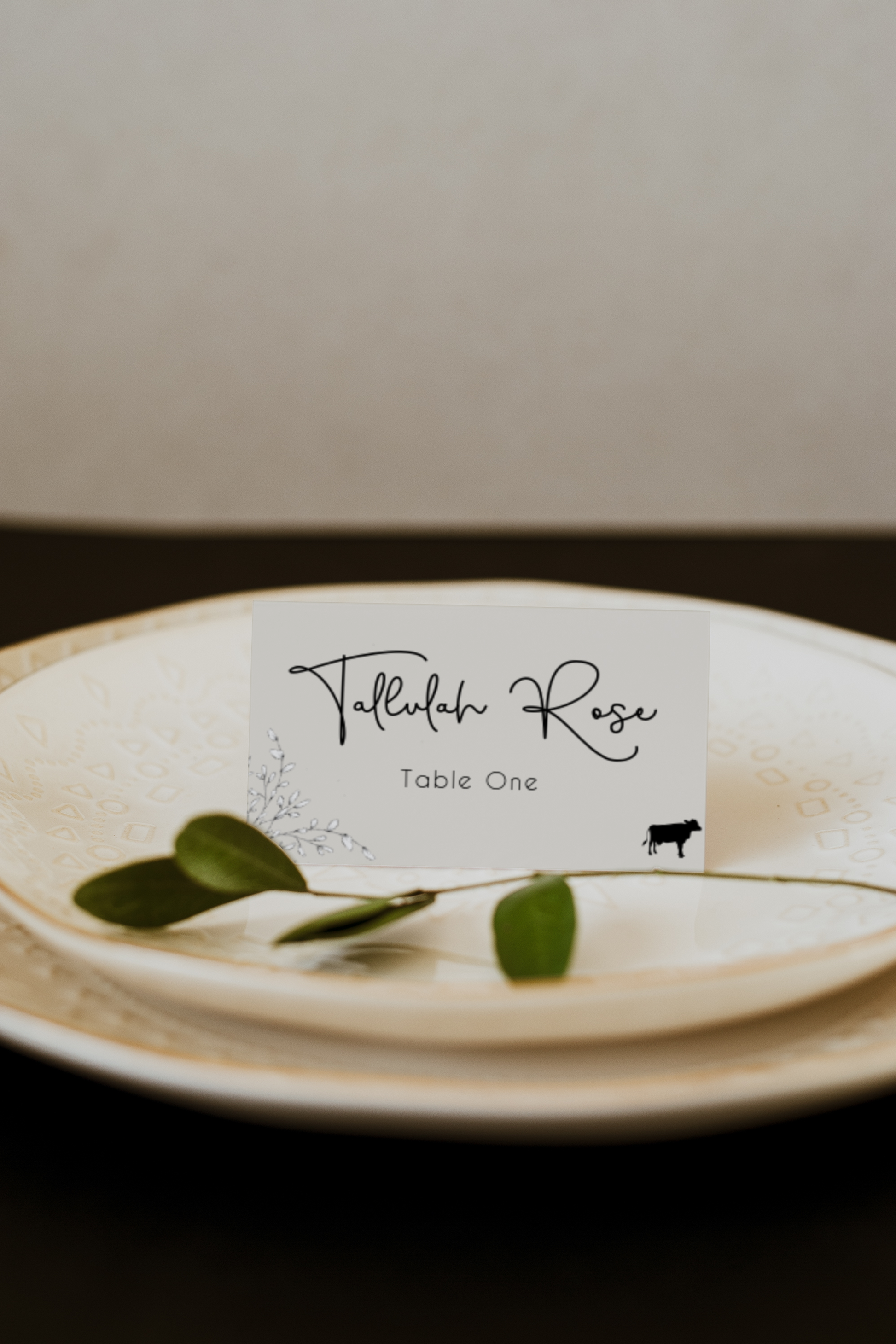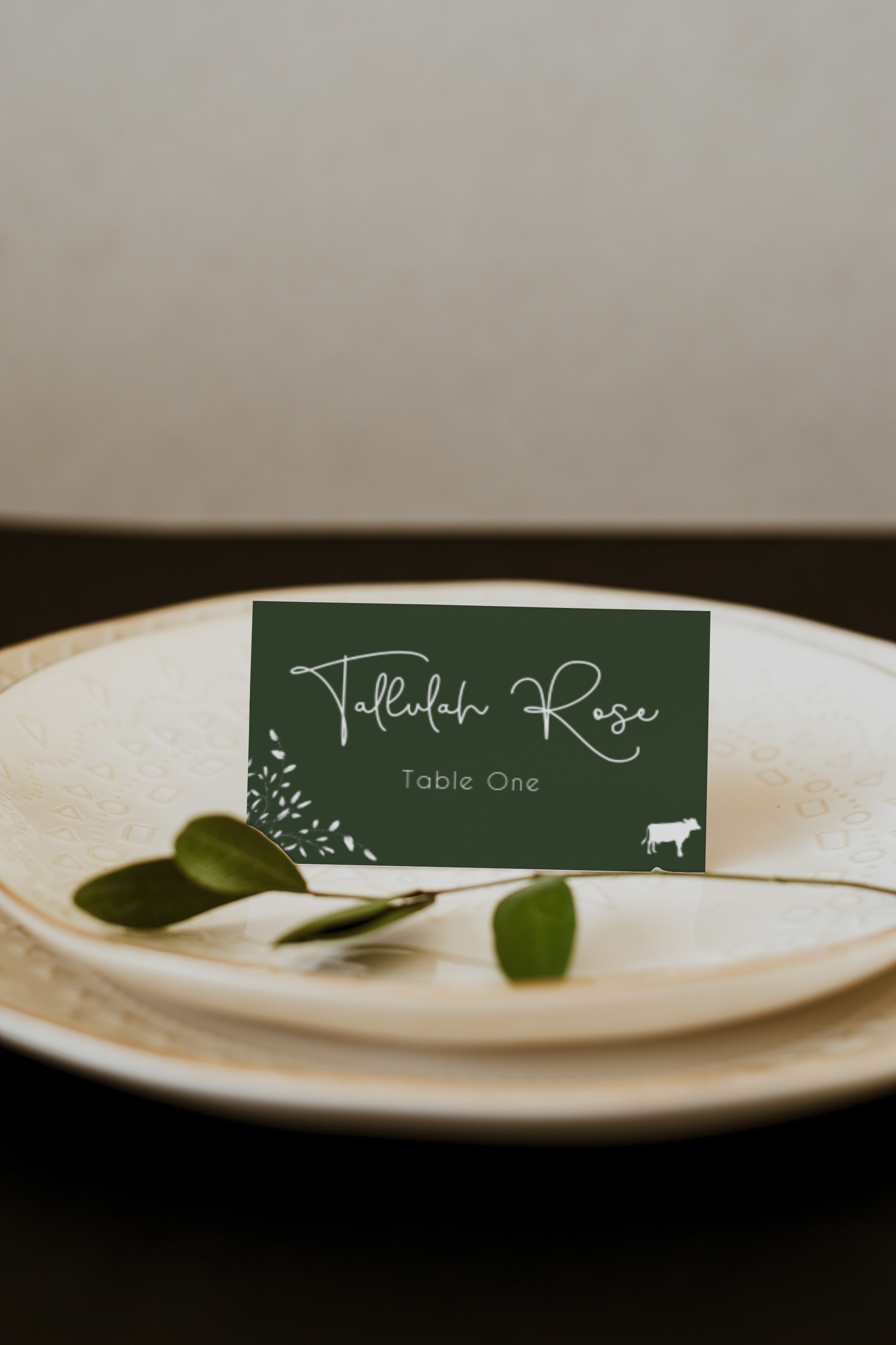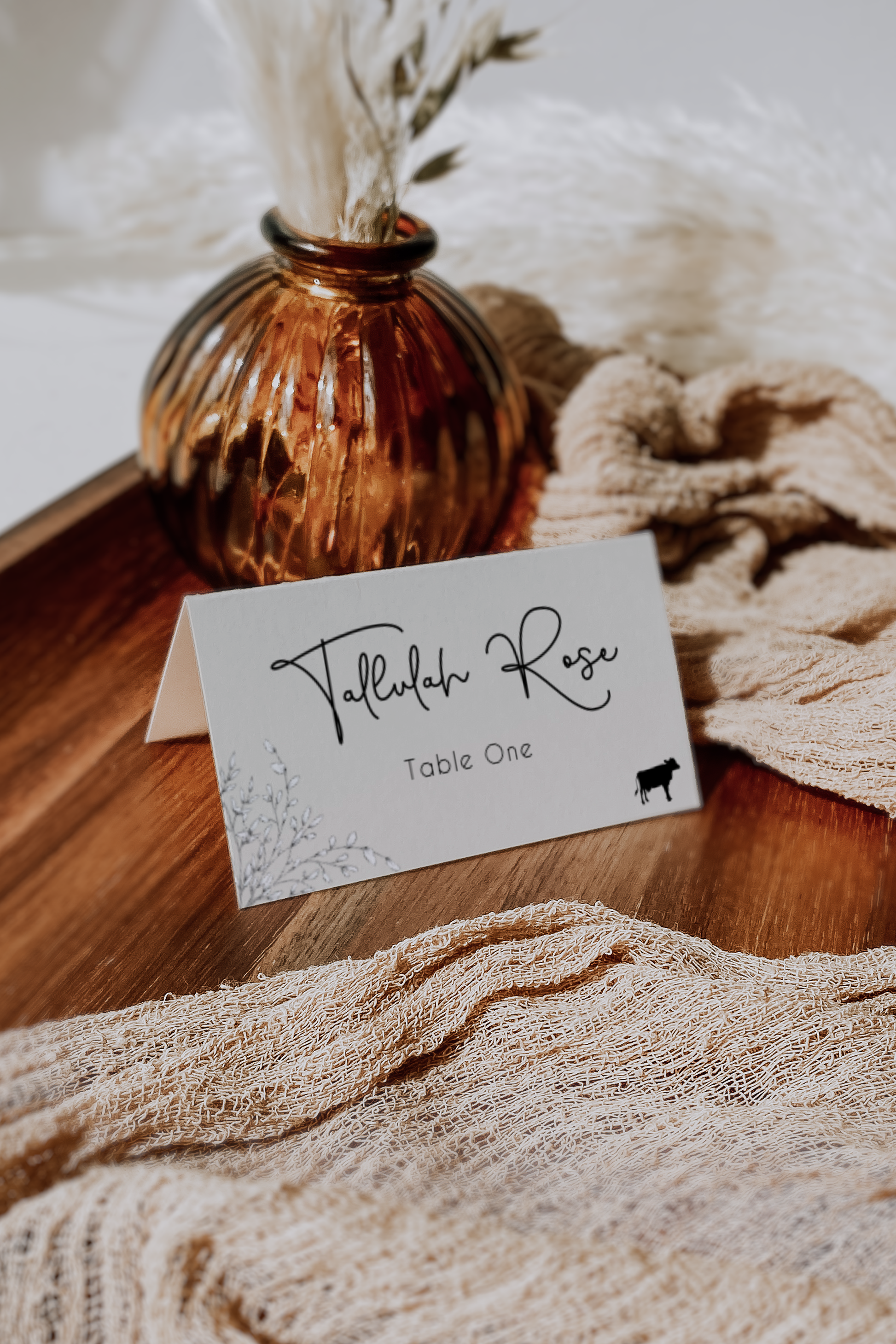 This modern leaf name card template is elegant, beautiful and easy to customize. Eighteen black and eighteen white meal icons are included for easy meal selection. Choose from a flat name card style or tent fold! Each style is available in four gorgeous coordinating shades.