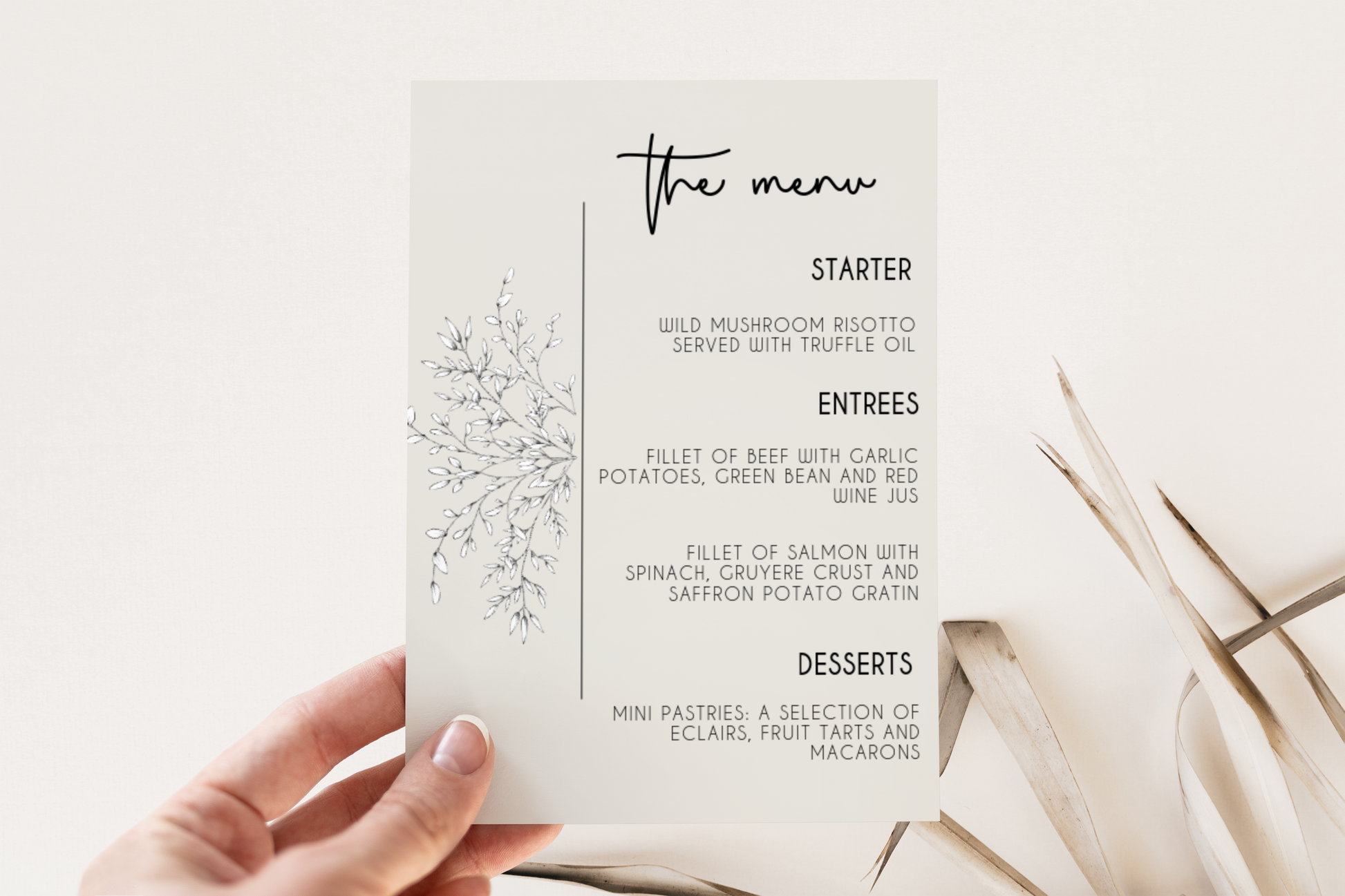 This modern wedding menu card is unique and easy to customize!